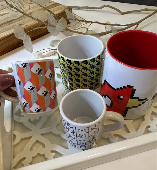 Set de Tazas para Café Espresso o Turco Mod. Pixel Bird 3 oz - 4 pz.