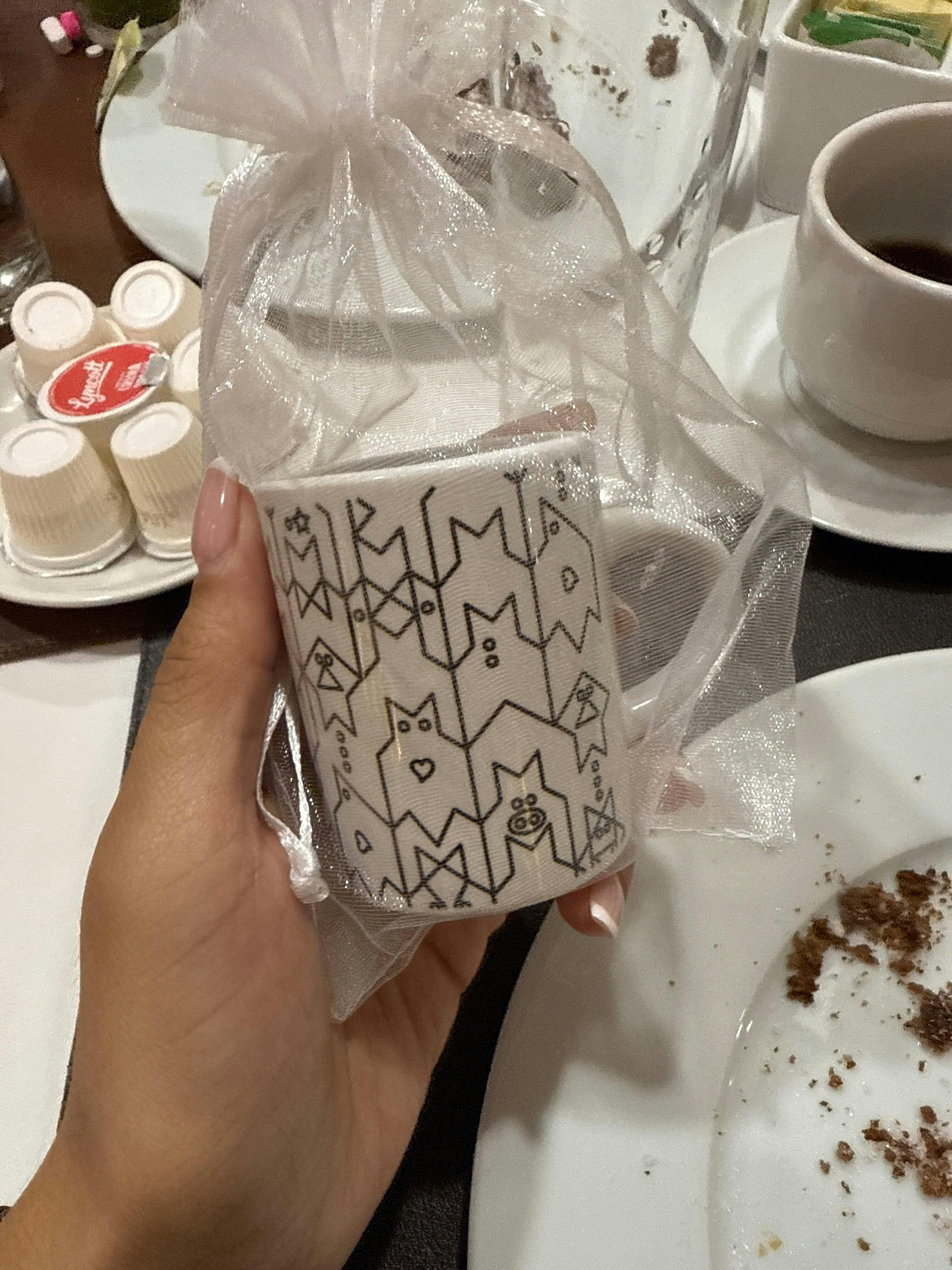 Taza con imágenes de León. Interior y asa negras.
